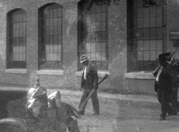 Men carry guns outside the Chiquola Mill