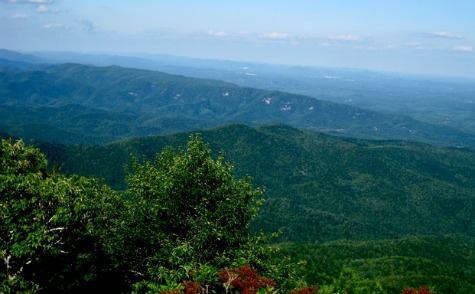 Photo of Brown Mountain taken from atop Table Rock Mountain in the Linville Gorge. The mountain is the long ridge in the middle of the photo.