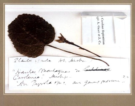 Now we move on to 1839. Young Asa Gray was traveling in Europe, ostensibly buying scientific books for the fledgling University of Michigan, but in fact indulging his first love by meeting botanists and investigating herbaria. In the Michaux Herbarium he came upon the still unclassified plant from Carolina and realized with excitement that it represented a new genus. The find also suggested that the Carolina mountains were an area ripe for botanical explorations.